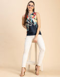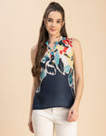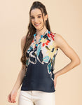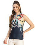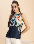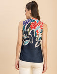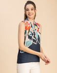 Features: Sleeveless, Mandarin Collar, Regular Length, Regular Fit, Fabric Button, Lightweight, All Over Printed Pattern.