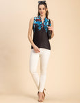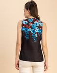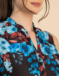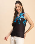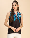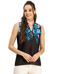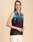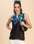 Features: Sleeveless, Mandarin Collar, Regular Length, Regular Fit, Fabric Button, Lightweight, All Over Printed Pattern.