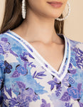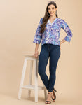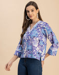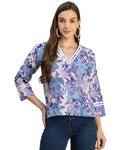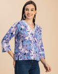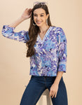 Features: V Neck, Long Sleeves, Regular Fit, Regular Length Top, Lightweight, All Over Printed Pattern.