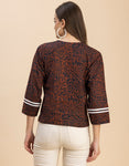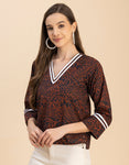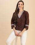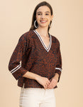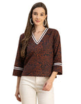 Features: V Neck, Long Sleeves, Regular Fit, Regular Length Top, Lightweight, All Over Printed Pattern.