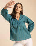 Tags: Printed Tops For Women, Summer Tops For Women, Stripe Print Tunics, Stripe Print Tops, V Neck Tops For Women, Long Sleeves Tops For Women, Casual Tops For Women