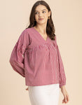 Tags: Printed Tops For Women, Summer Tops For Women, Stripe Print Tunics, Stripe Print Tops, V Neck Tops For Women, Long Sleeves Tops For Women, Casual Tops For Women