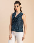 Features: Sleeveless, Cowl Neck, Regular Length, Lightweight, All Over Printed Pattern.