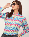Features: Long Cuff Sleeve, Folded Ban Collar, Shirt Style, Regular Fit, Lightweight With Chevron Prints.