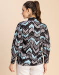 Features: Long Cuff Sleeve, Folded Ban Collar, Shirt Style, Regular Fit, Lightweight With Chevron Prints.