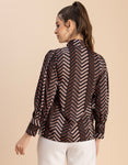 Features: Long Cuff Sleeve, Folded Ban Collar, Shirt Style, Regular Fit, Lightweight With Chevron Prints.