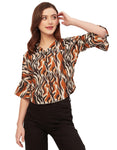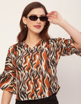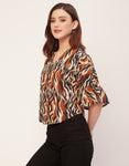 Features: Short Sleeves, V-Neck, Plastic Button Down Shirt, Loose Fit, Lightweight, Chic, Animal Prints Pattern.
