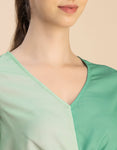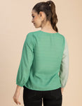 Features: Short Sleeves, Round Neck, Regular Fit Top, Color Block Style.