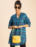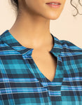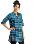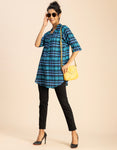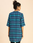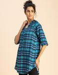 Features: Three Quarter Sleeves, Mandarin Collar, Plastic Button, Long, Relaxed Fit, Regular Length, Lightweight, All Over Printed Pattern.