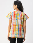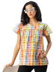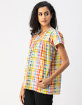 Features: Short Sleeves, Round Neck, Plastic Button, Regular Fit, Regular Length, Lightweight, All Over Printed Pattern.
