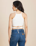 Features: Round Neck, Crop Length Top, Sleeveless, Drawstring Styled Styled Back, Opaque, Lightweight, Regular Fit Top