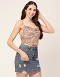 Features: Side Zipper Sweetheart Neck Strappy Shoulders Sleeveless Cropped Length Lightweight And All Over Printed Pattern
