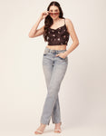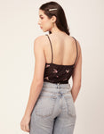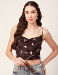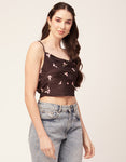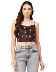 Features: Side Zipper Sweetheart Neck Strappy Shoulders Sleeveless Cropped Length Lightweight And All Over Printed Pattern