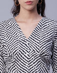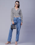 Features: Long Sleeves, V Neck, Cropped Length, Front Buttoned For Styling, Lightweight And All Over Pattern