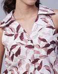 Features: Sleeveless, V Neck, Lightweight, Collared Neck And Printed Pattern