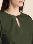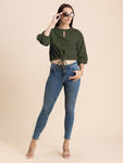 Features: Cropped Length, Tie-Up Waist, Keyhole Neck, Elbow Sleeves, Lightweight And All Over Solid Pattern