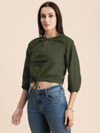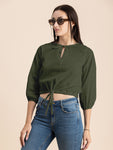 Tags: Tops For Women, Crop Tops For Women, Cute Tops For Women, Tops For Women Trendy, Elbow Sleeves Tops For Women, Tie-Up Waist Tops For Women, Solid Tops For Women