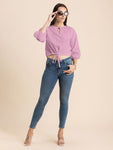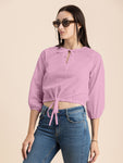 Features: Cropped Length, Tie-Up Waist, Keyhole Neck, Elbow Sleeves, Lightweight And All Over Solid Pattern