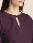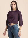 Features: Cropped Length, Tie-Up Waist, Keyhole Neck, Elbow Sleeves, Lightweight And All Over Solid Pattern