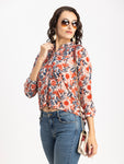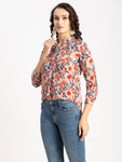 Tags: Printed Tops For Women, Mandarin Collar Tops, Casual Tunic Blouse