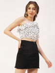 Features: single shoulder, elbow sleeve, cropped length, frilled pattern, body fitted, lightweight and all over printed pattern