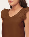 Features: V Neck, Ruffle Pattern, Short Length, Lightweight And Solid Pattern