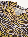 Features: Short Sleeve, V-Neck, Wooden Button On Front, Regular Length, Lightweight, All Over Printed Pattern.