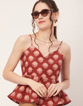 Tags: Sleeveless Peplum Tops, Printed Tops For Women, Spaghetti Strap Tops, Strap Tube Top, Pleated Tops For Women, Beach Wear Tops
