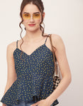 Tags: Sleeveless Peplum Tops, Printed Tops For Women, Spaghetti Strap Tops, Strap Tube Top, Pleated Tops For Women, Beach Wear Tops
