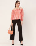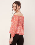Tags: Printed Off-Shoulder Tops, Smocked Waist Tops, Full Sleeve Tops For Women, Women Casual Tops, Summer Tops, Resort Wear Tops, Vacation Tops