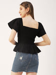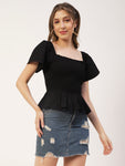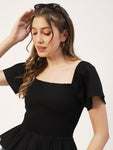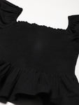 Features: square neck, short sleeves, smocked, short length, lightweight and all over Solid pattern