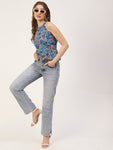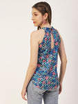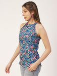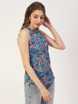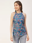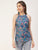 Features: round neck, sleeveless, strap shoulders, long length, lightweight and Styled Back, all over printed pattern