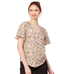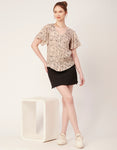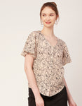 Features: V Neck, Butterfly Sleeves, Regular Length, Front Button Placket, Lightweight And All Over Printed Pattern