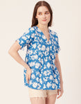 Features: V Neck, Short Sleeves, Long Length, Flared, Lightweight And All Over Printed Pattern