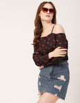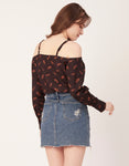 Features: Off Shoulder, Long Sleeves, Regular Length, Front Button Placket, Lightweight And All Over Printed Pattern