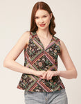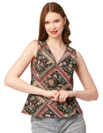 Features: Front Buttoned, Sleeveless, Collared Neck, Regular Sized, Light Weighted And All Over Printed Pattern
