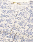 Features: V Neck Flutter Elbow Sleeves Front Buttoned Flared Hem Regular Length Lightweight And All Over Printed Pattern