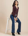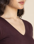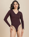 V-Neck Solid Cotton Bodysuit For Women