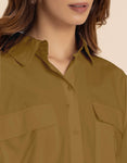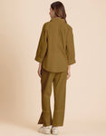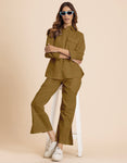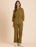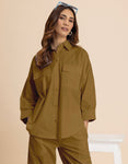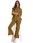 Solid 2 Pcs Cotton Co-Ord Set Long Shirt With Pants for Women