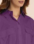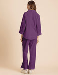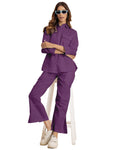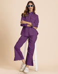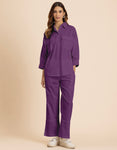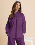 Solid 2 Pcs Cotton Co-Ord Set Long Shirt With Pants for Women