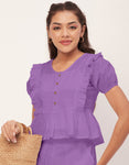 Solid Co-Ord Set, Cotton Top & Pajamas