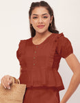Solid Co-Ord Set, Cotton Top & Pajamas