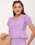 Solid Co-Ord Set, Cotton Top & Pajamas