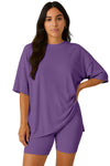 Moomaya Women's Oversized T-Shirt and Biker Shorts Lounge Set - 2 Piece