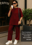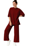 Women's 2 Piece Split Hem Tunic Top and Soft Pants with Pockets