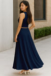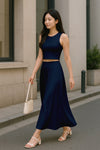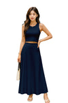 Women's 2 Pcs Sleeveless Crop Top and High Waisted Flared Maxi Skirt
