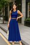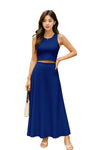 Women's 2 Pcs Sleeveless Crop Top and High Waisted Flared Maxi Skirt