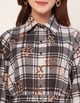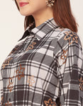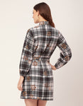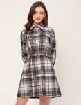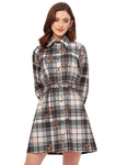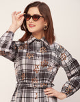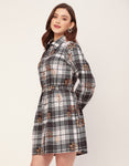 Features: Long Sleeves, A- Line Style Dress, Plastic Button, Shirt Collar Neckline, Midi Length, Regular Fit Dress With Belt, Lightweight, All Over Printed Pattern.