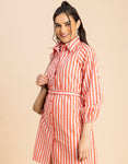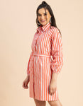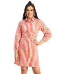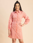 Features: Long Sleeves, A- Line Style Dress, Plastic Button, Shirt Collar Neckline, Midi Length, Regular Fit Dress With Belt, Lightweight, All Over Printed Pattern.