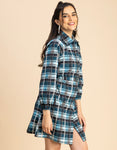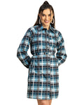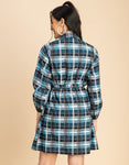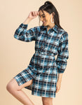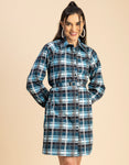 Features: Long Sleeves, A- Line Style Dress, Plastic Button, Shirt Collar Neckline, Midi Length, Regular Fit Dress With Belt, Lightweight, All Over Printed Pattern.